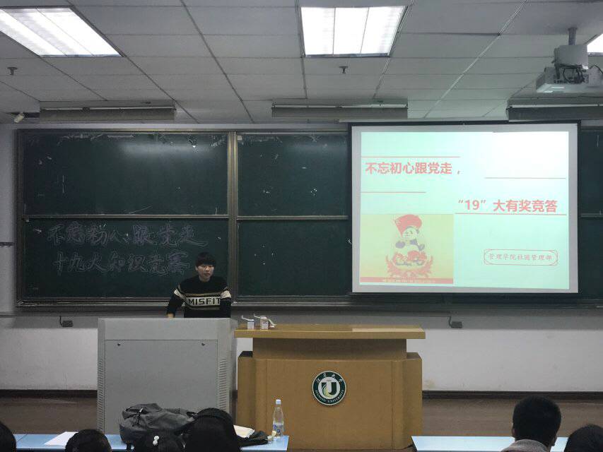 11月17日,管理学院在三江楼0401开展了“不忘初心跟党走”十九大有奖竞答活动,组织学院同学深入学习党的十九大精神。此次活动由管理学院社团管理部主办,由挂靠本院的8个社团协办。